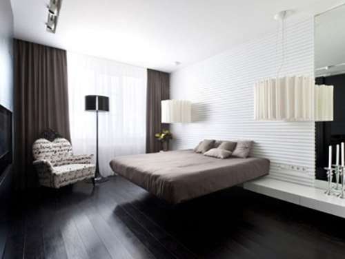 Black laminate or parquet is good for large spaces.He personifies luxury and excellent taste, requires carefully selected furniture to match the tone and create a mandatory contrast.