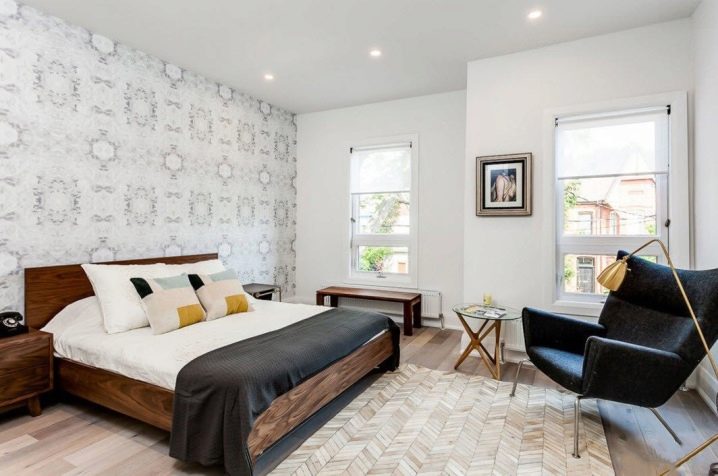 Accent wall does not replace the rest of the decor in the room: designers advise to use a lot of textiles in the bedroom (especially pillows) and not to neglect paintings, photographs, figurines, vases, candlesticks. At first glance, a boring white or beige bedroom should be diluted with bright accents: a purple pouf or chair, a couple of suitable pillows.
