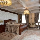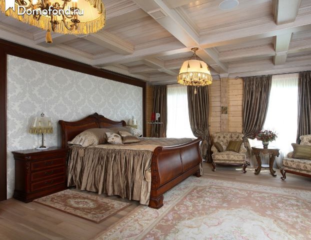 In the big room there is a place not only wide and comfortable bed, but also other items of a bedroom set. Try to have all the furniture in the same style.. If the bed resembles a royal bed, then a modern style chest of drawers is unlikely to go well with it. Choose something similar in style that fits well with the general theme of the room.