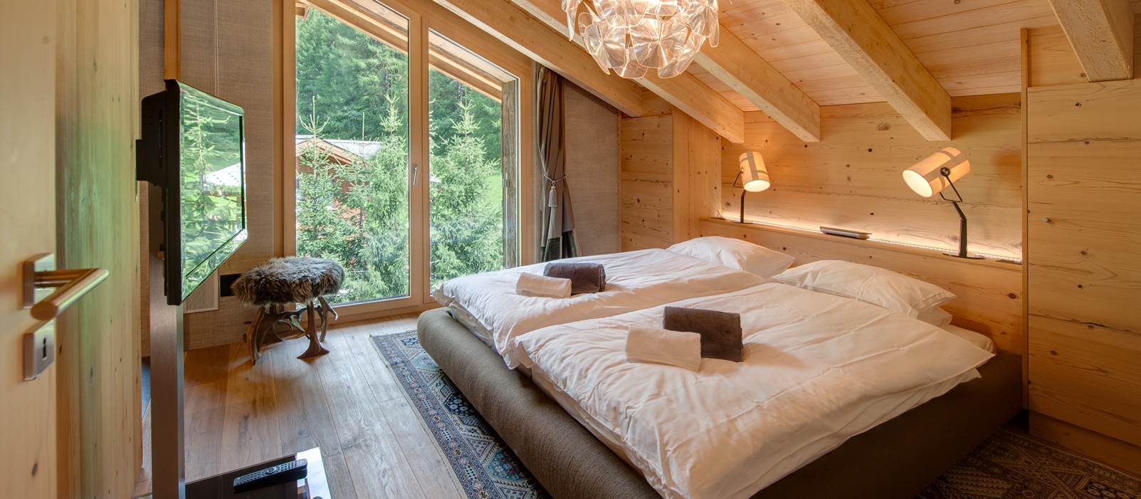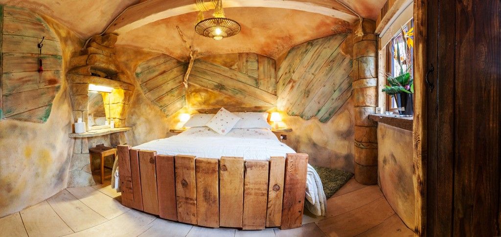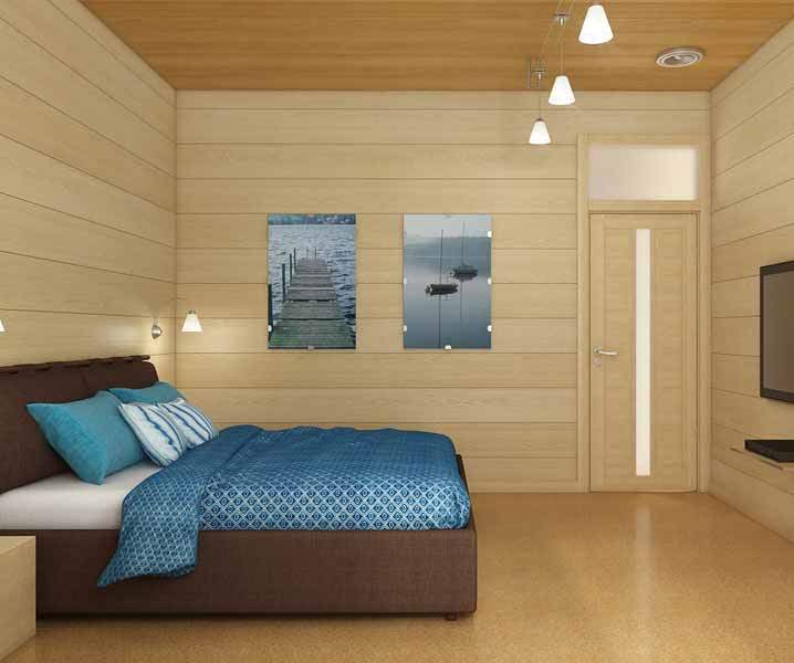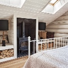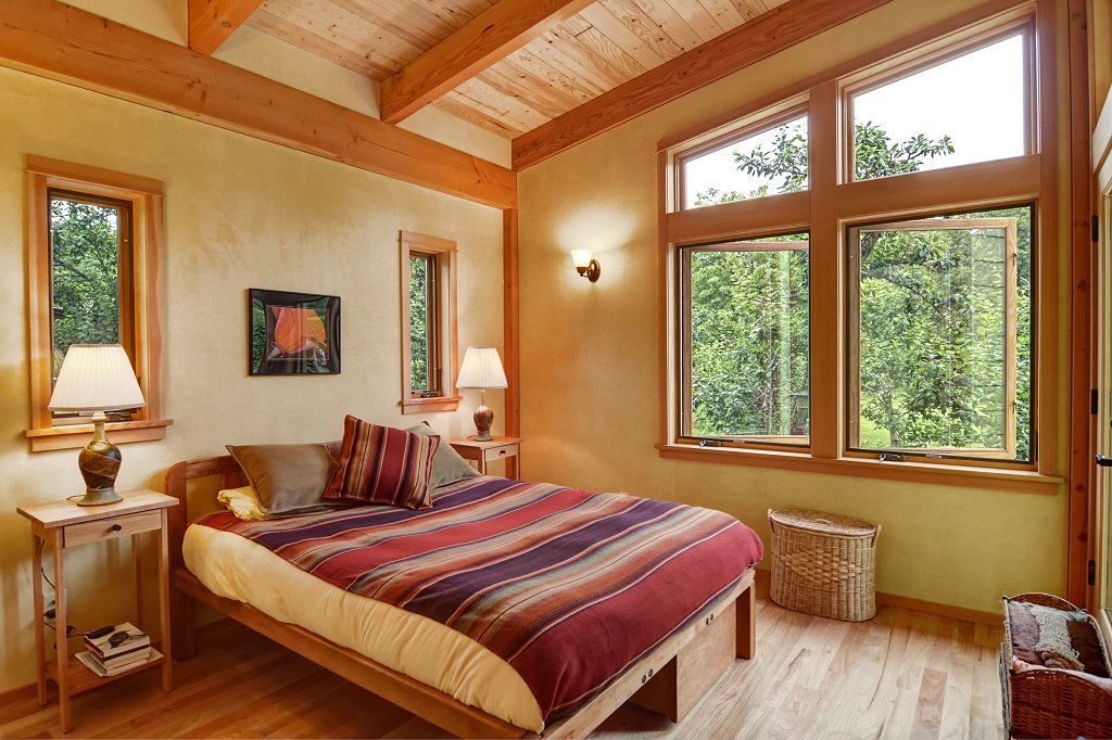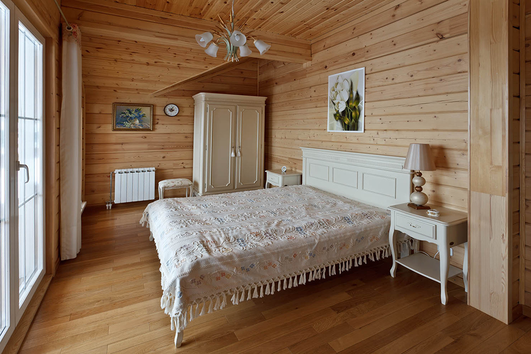 Bedroom in a wooden house