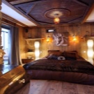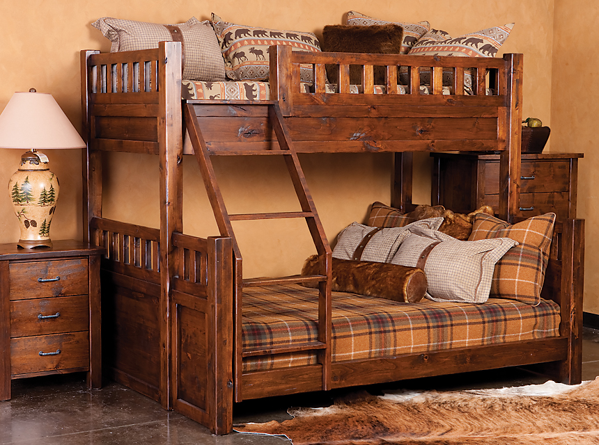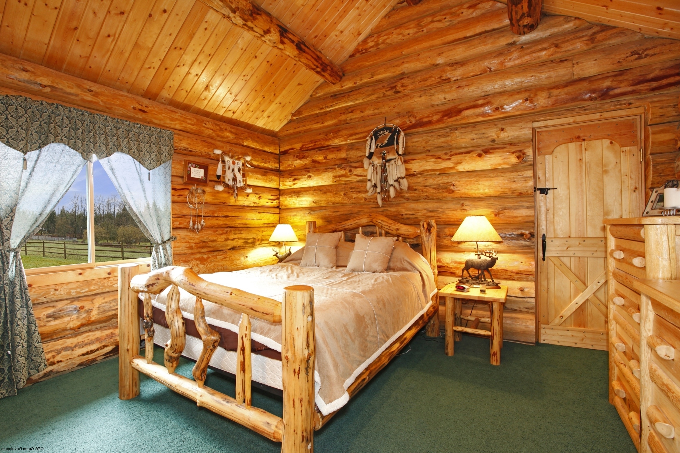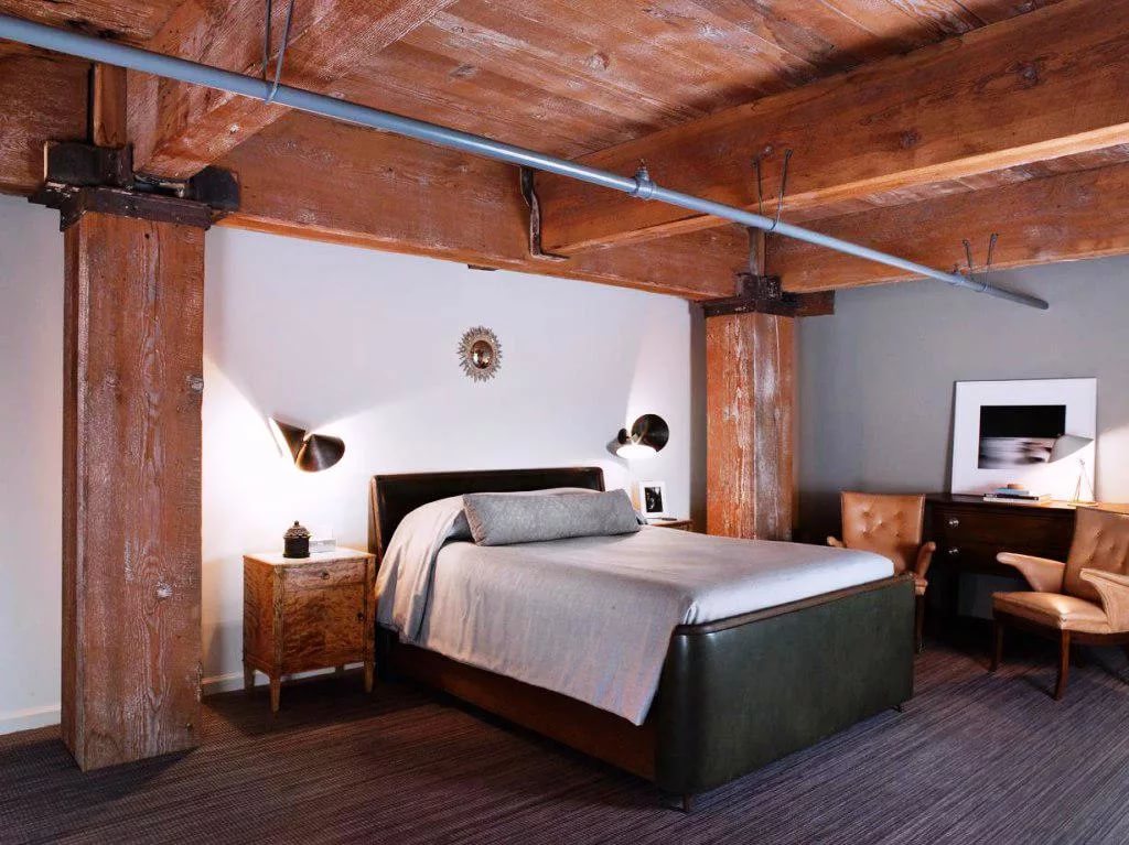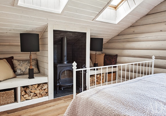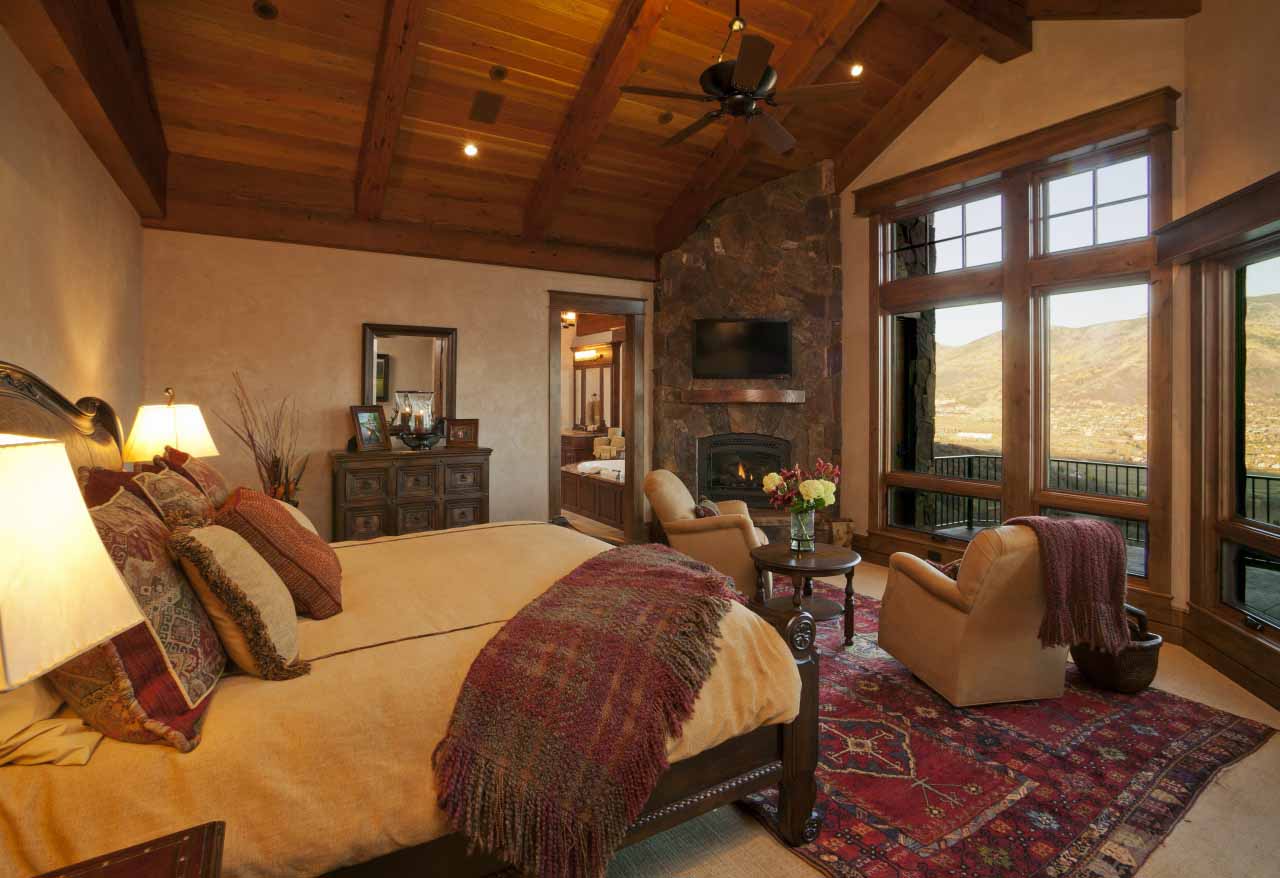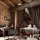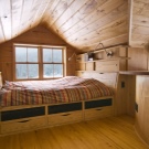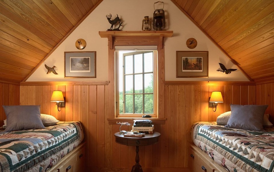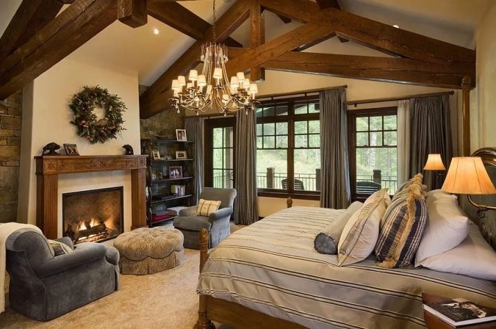 Most often, wooden or log cabin make out in the popular now Rustic style. This style provides a combination of dark wood with natural ingredients. It can be linen bedspreads, a bed with a log base or natural fur on the floor.