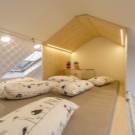 If this is a room for a teenager or a child, then you can choose a bunk bed.When the child is alone, the lower part can be a desk or a place to play. And if there are two kids, they will comfortably fit on such a bed.