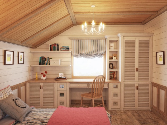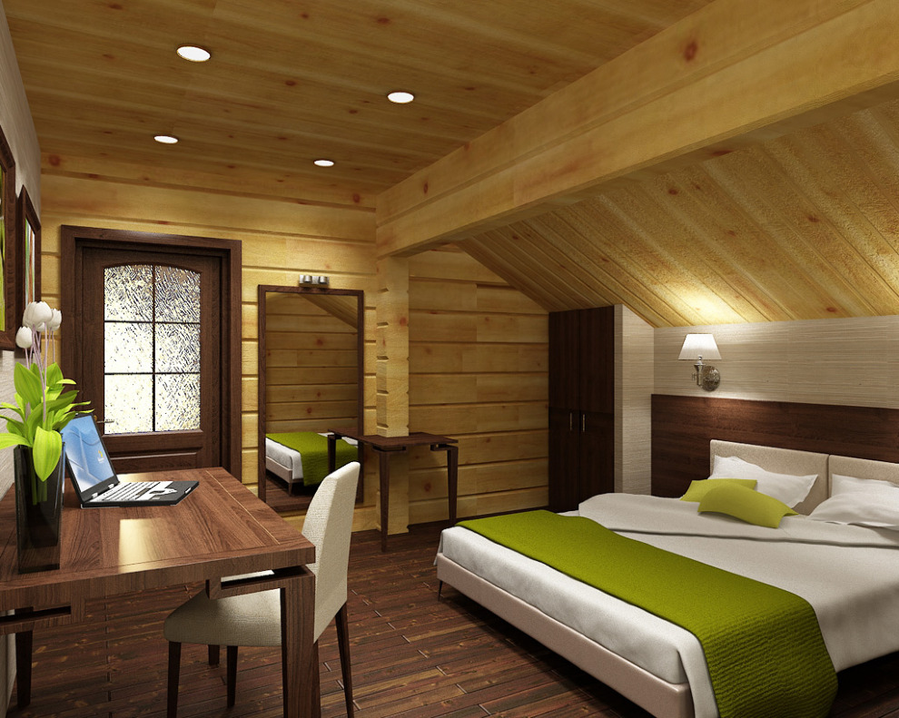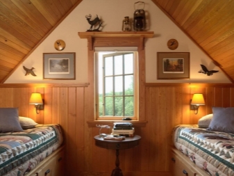 Often in the wooden room under the bedroom and take away the upper room. This may be a room that was previously thought of as an attic or pantry. It is possible to arrange quite a cozy room for rest and sleep.