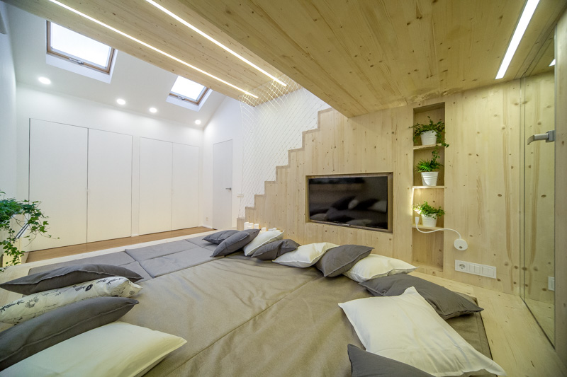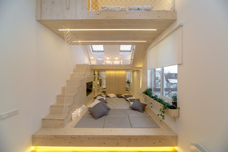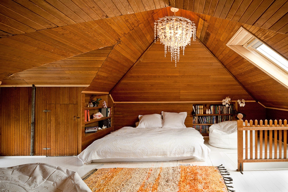 In the event that you have a small room, you can equip a room in the attic. This is true in a country house with one floor.