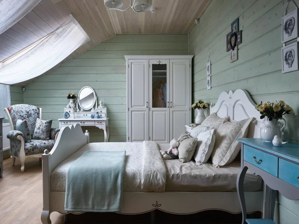 Then look at the video: the idea of organizing the bedroom of a country house and its embodiment.