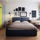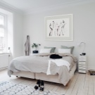 For the Scandinavian bedroom a wide bed with a high headboard is perfect. It fits well with the situation, if you put it against the wall. This is not the only possible option: the Scandinavian style implies the organic use of space.In small rooms, the bed can move from the center of the composition. It is not necessary to abuse a large number of lamps. Although the Scandinavian bedroom should be as light as possible, for its lighting will be enough 1-2 chandeliers with bright fluorescent lights. Lamps should give the most natural and natural light, the rest will make the white surface of the walls, ceiling and various objects.