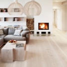 In rooms decorated in Scandinavian style, the floor is the backdrop for furniture. The floor should be light and not attracting attention, a few shades darker than the walls and ceiling. The best fit wood flooring or laminate. Bleached planks, preserving the natural texture, fit well into such a room. In addition, they provide good thermal insulation.