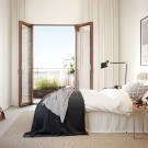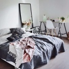 To allow sunlight to freely enter the bedroom, window curtains are rarely used. If you want to diversify the interior of the room with curtains, then keep in mind that they should be light (if possible - light). As an alternative, you can use blinds. Large mirrors can be considered another characteristic feature of this style. In combination with wooden frames, the silver surface of the mirrors will create an attractive contrast. It is best to look for the necessary furniture in IKEA. It offers a very wide range of similar products.This brand has northern roots, as well as the Scandinavian style in the interior.
