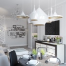 Unusual lamps and stylish modern lamps will look great. The main thing - that they are well scattered light. Lamp shades and ceiling lamps that darken the room should not be used in the design of the room.