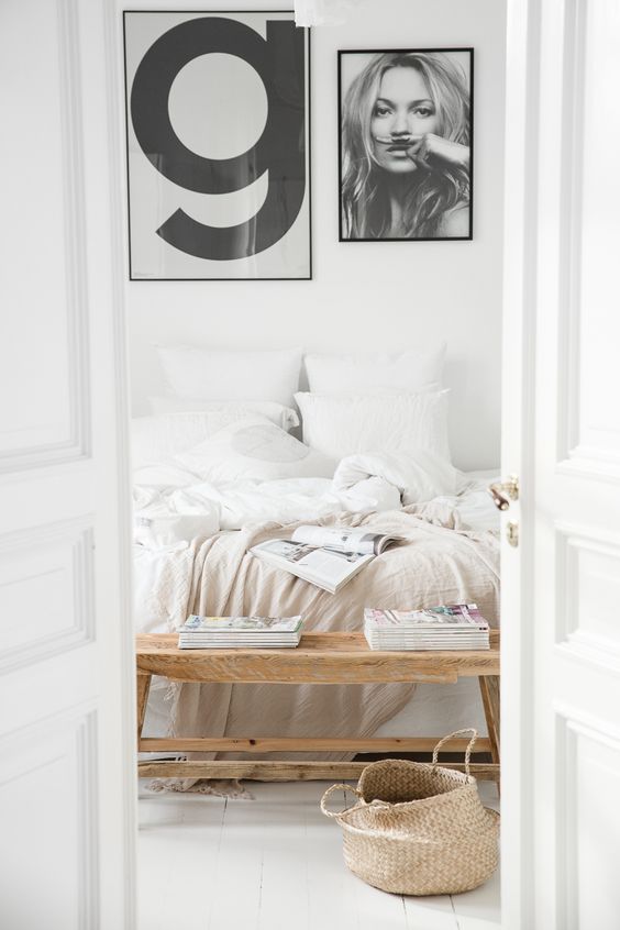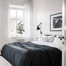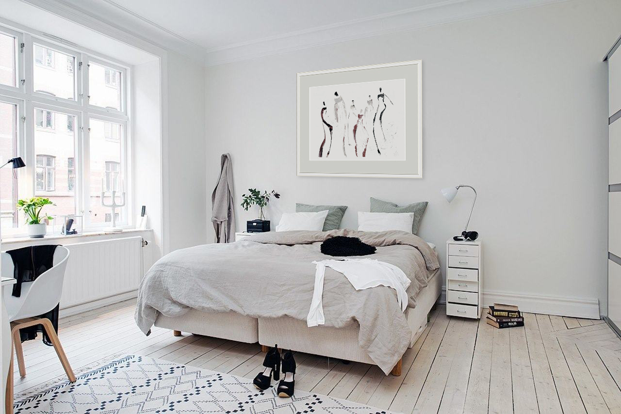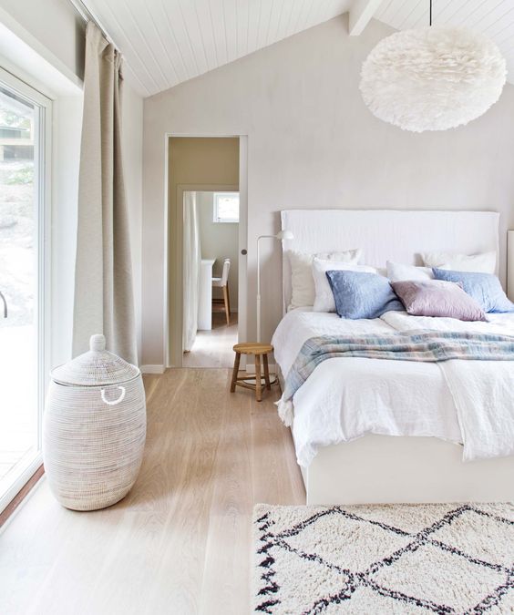 For the Scandinavian style, light shades are important, because in Scandinavia there is an acute lack of sunlight throughout the year. The main color used in the design of the Scandinavian style is white. Although it seems that the abundance of white color creates a feeling of the “winter kingdom”, in fact it reflects even scanty sunlight and disperses the winter mist. Instead of white (or simultaneously with it) can be used in blue, gray and beige. White color helps to visually enlarge the space, which is especially important for small rooms.However, the abundance of white color can make the bedroom unnecessarily "cold" or "sterile." Therefore, another important element of the Scandinavian style is playing with contrast.