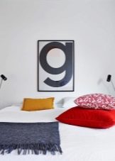 The Scandinavian style is valued for its ability to use space rationally. In the attic rooms, where there is no extra space at all, because it is “eaten up” by ceiling beams and a sloped ceiling, the choice of a mansard bedroom in the Scandinavian style will be the most profitable solution. No less successful would be the choice of Scandinavian style for the design of the bedroom on the balcony. Large balcony windows, an abundance of white color will make the room really bright and compensate for the lack of space. It is on the balcony bedroom that various hand-made trivia will fall in handy - knitted rugs, embroidered pillows.