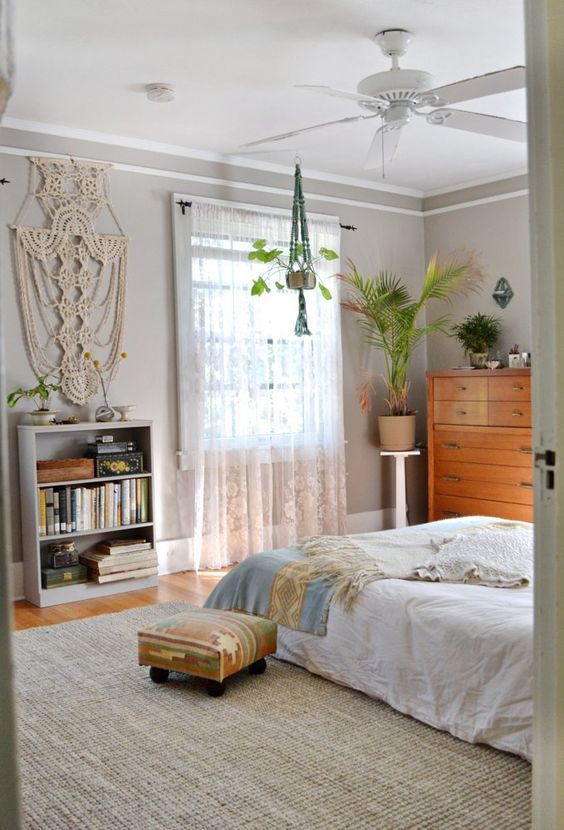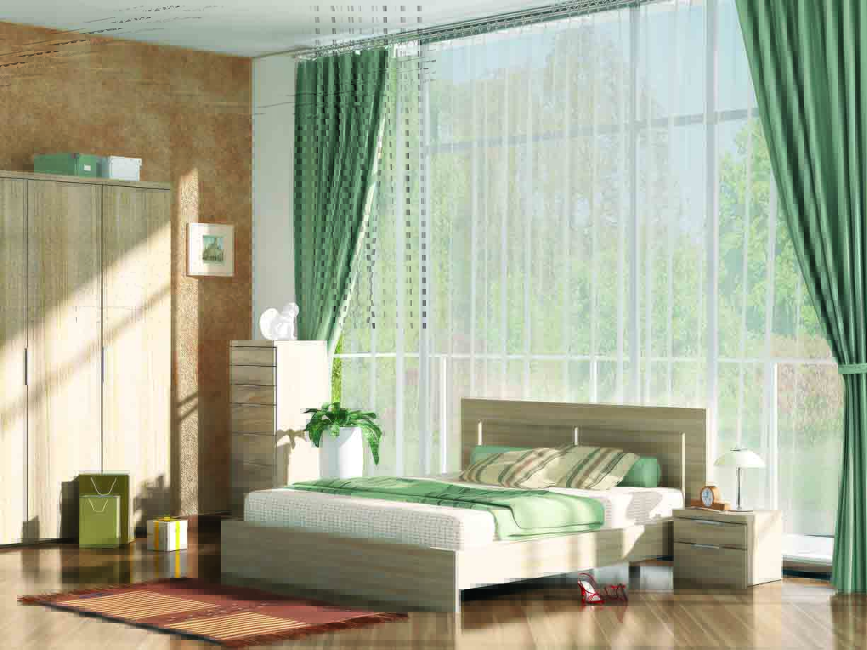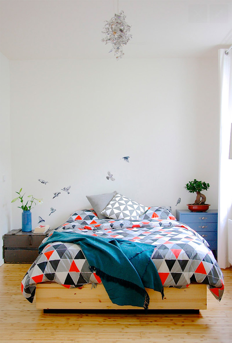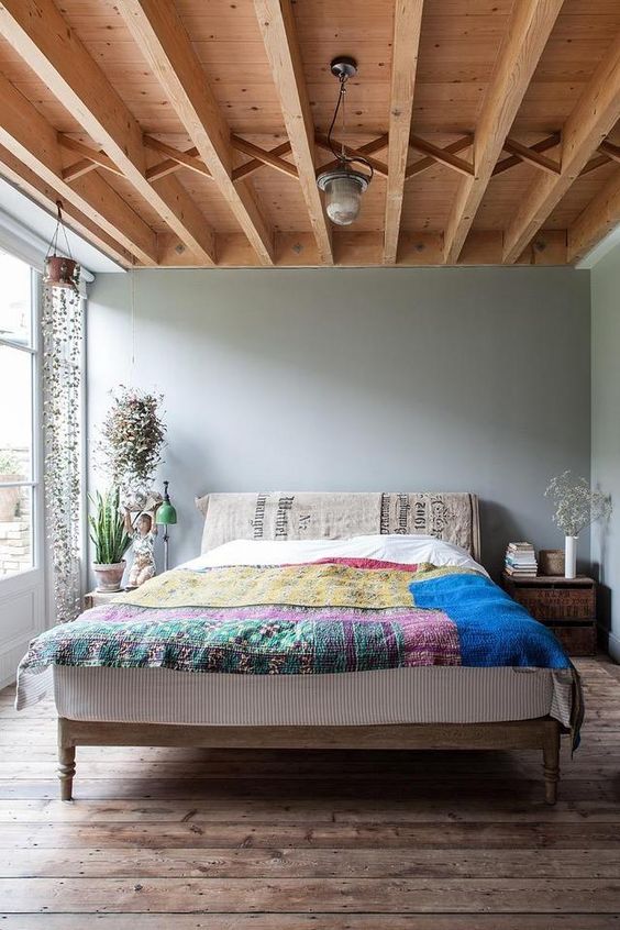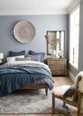 Do not neglect the woody tones. They will make a pleasant variety in the color palette of the bedroom.