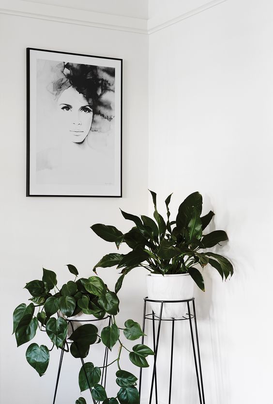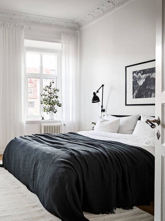 Black color perfectly emphasizes the architectural features of the room. Black elements of decor will contrast with the overall whiteness.