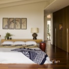 Creating a bedroom project in the style of Minimalism provides for the choice of one or two primary colors. They become the main color tone in finishing materials and pieces of furniture. But designers sometimes work with the same color, masterfully combining its shades. For the bedroom, the classic combination is considered to be pastel and warm shades of neutral tones, but dark colors are also often used.The basis can take wood texture and stone. Chrome surfaces look laconic.