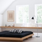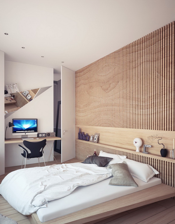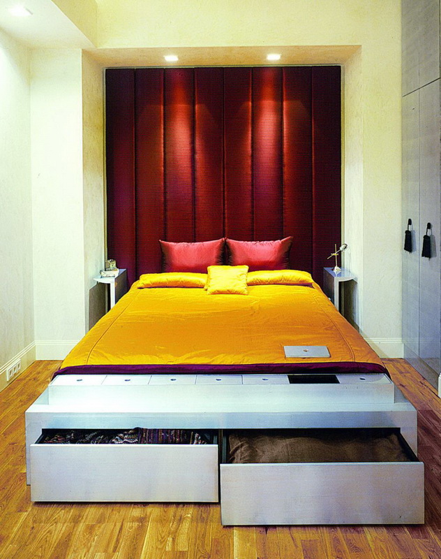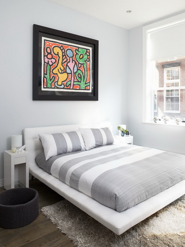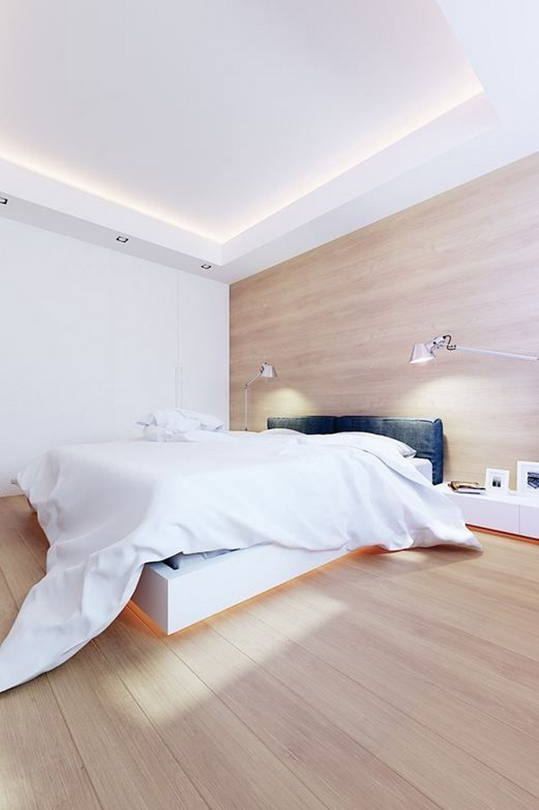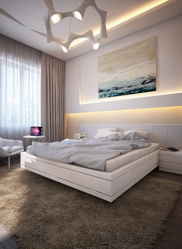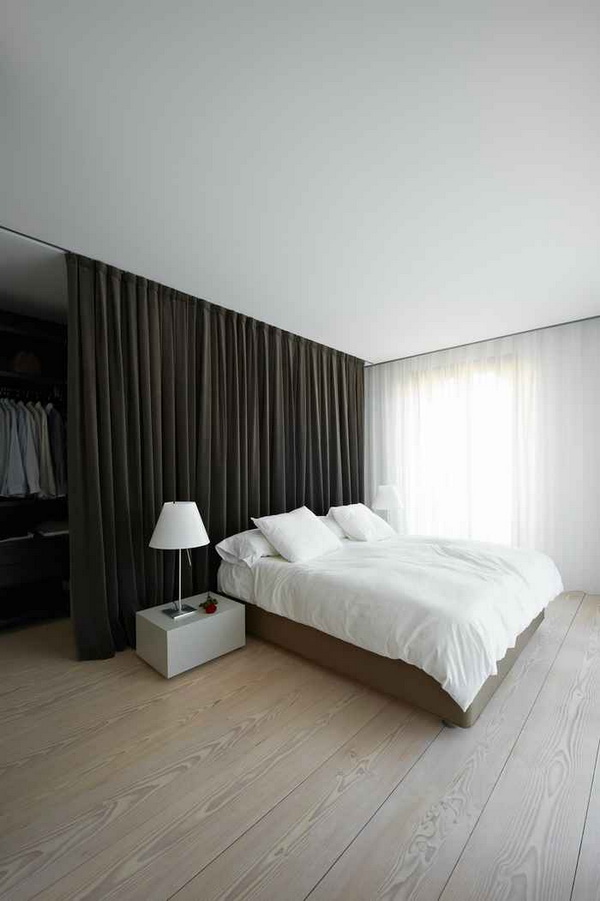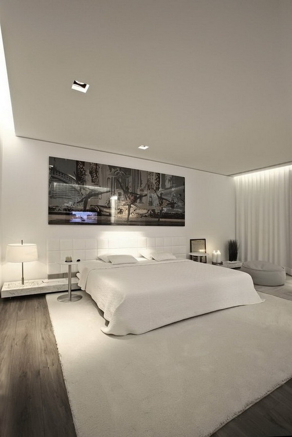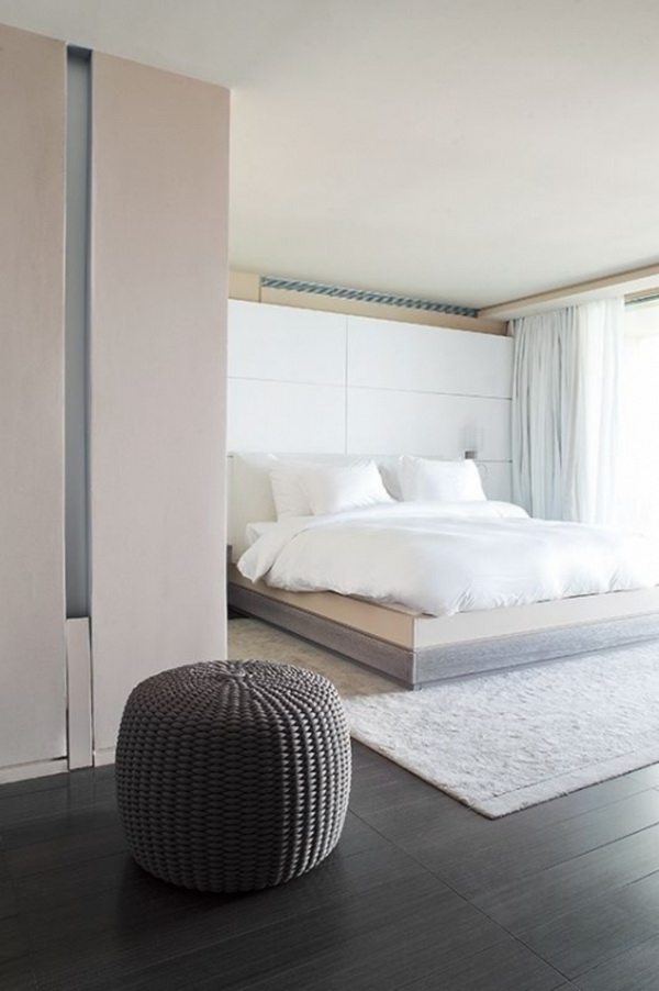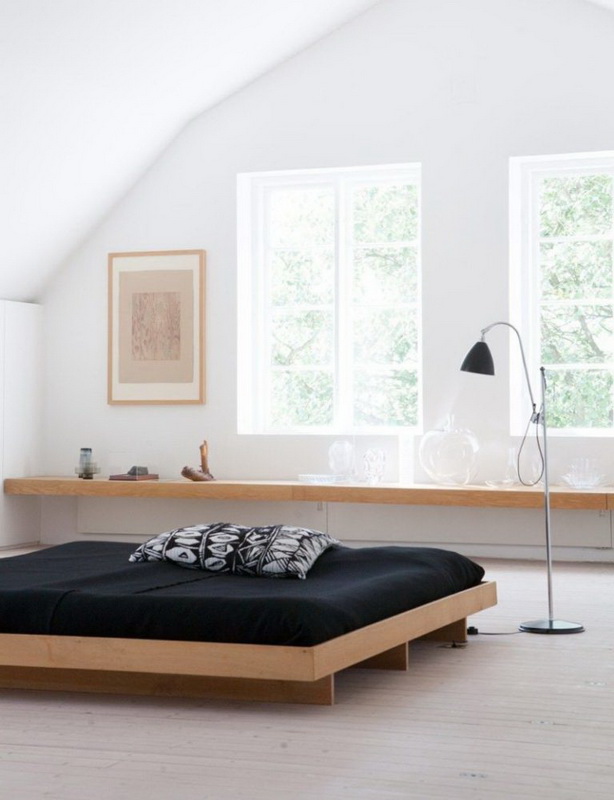 Beds of a simple rectangular shape without decoration with hidden departments for storage of things or so-called “floating” models will look favorably at the minimalist bedroom. The room should not be any extra items, only the most necessary for the bedroom.The best option for Minimalism are multifunctional interior items.