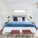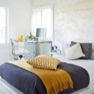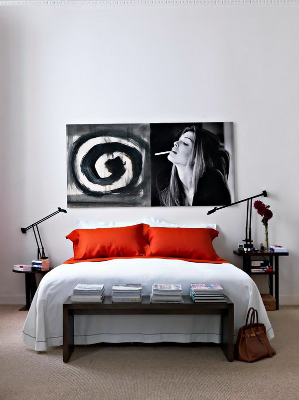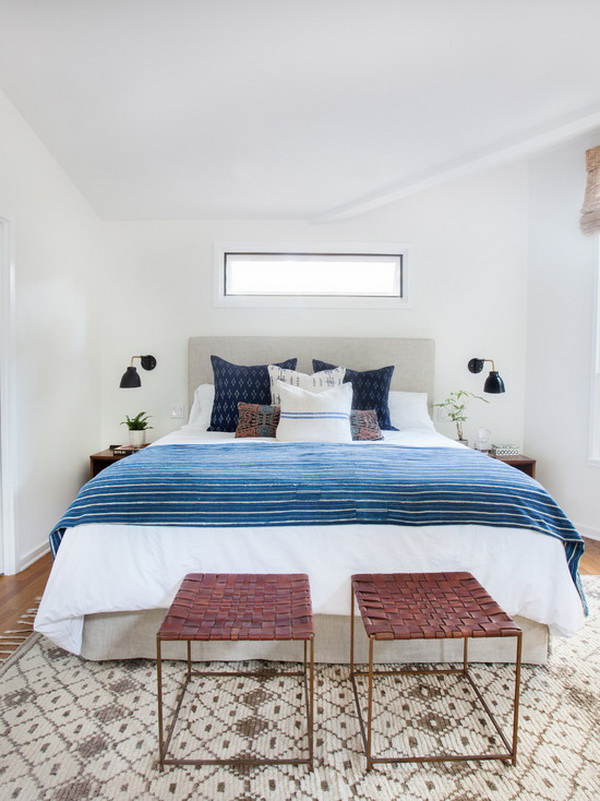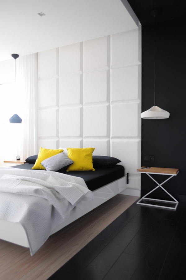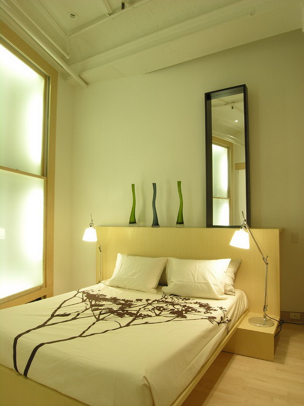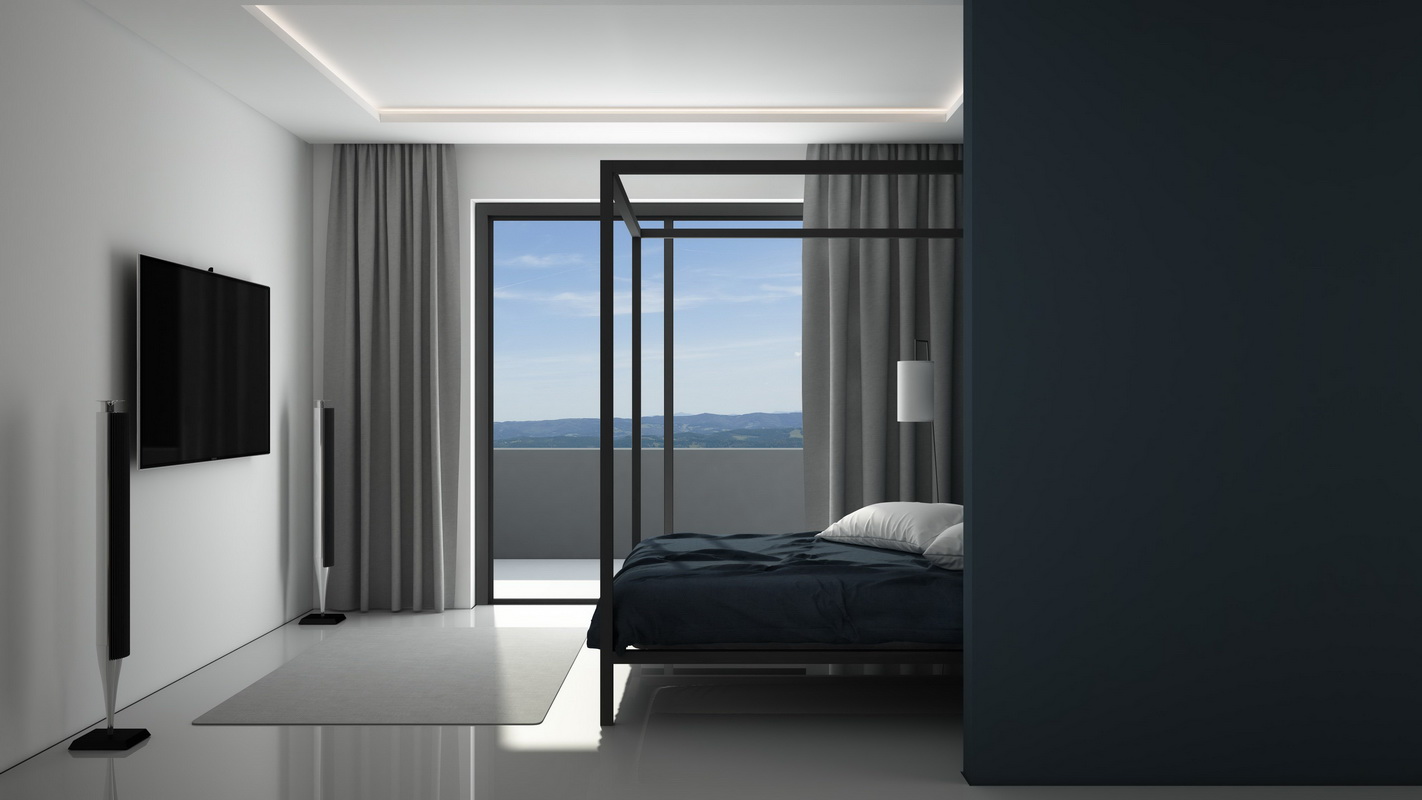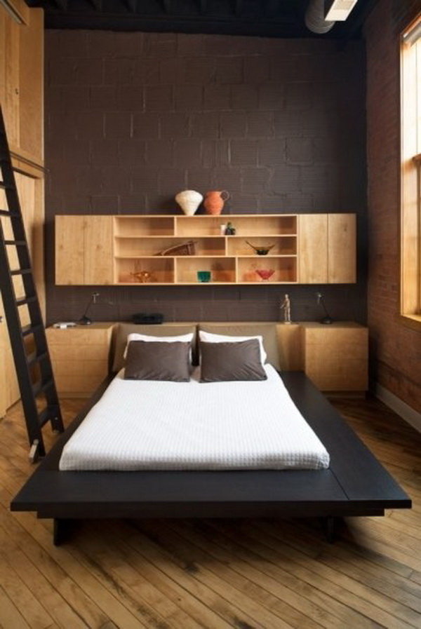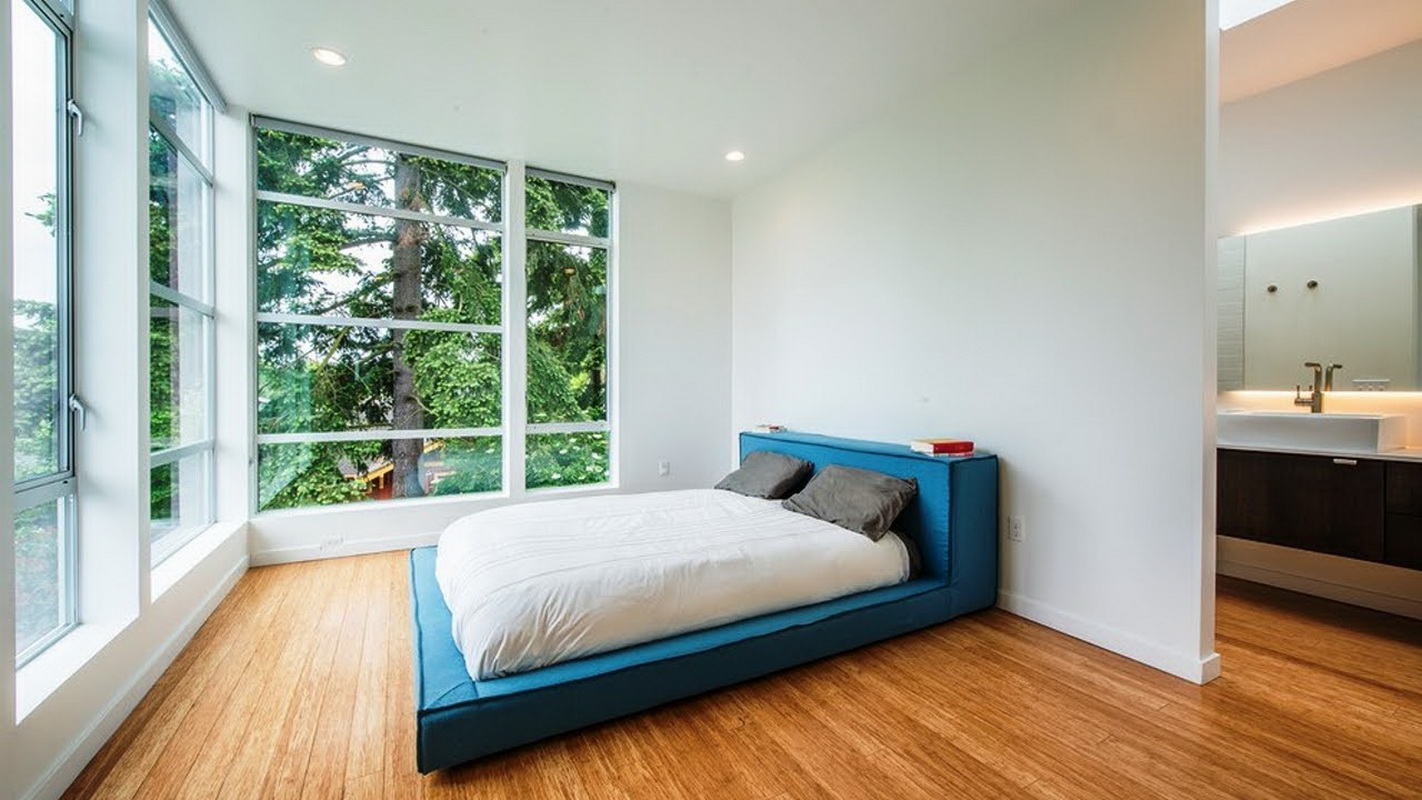 Beds of a simple rectangular shape without decoration with hidden departments for storage of things or so-called “floating” models will look favorably at the minimalist bedroom. The room should not be any extra items, only the most necessary for the bedroom.The best option for Minimalism are multifunctional interior items.