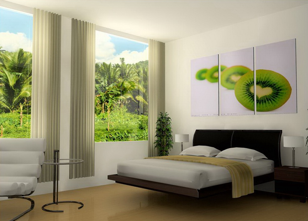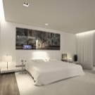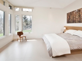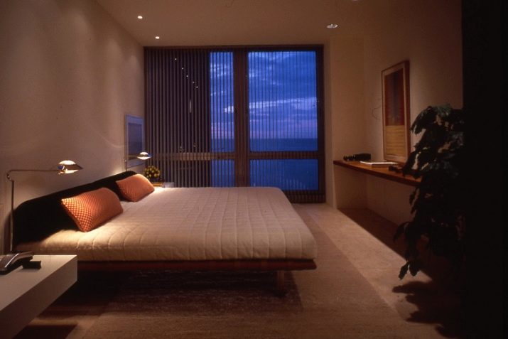 Textiles and decor items should also be present in a minimum quantity. Plain bedding, blanket or blanket of neutral colors, light tulle or window blinds. Of the accessories are allowed no more than five decorative parts. When choosing plants it is better to give preference to floor flowers in pots. In a minimalist interior design, modular pictures look beneficial. From technology - the most necessary. The setting should be monochrome and concise. An alarm clock and a desk lamp can be placed on the bedside tables. Each item must have its place. The main feature of Minimalism is orderliness.