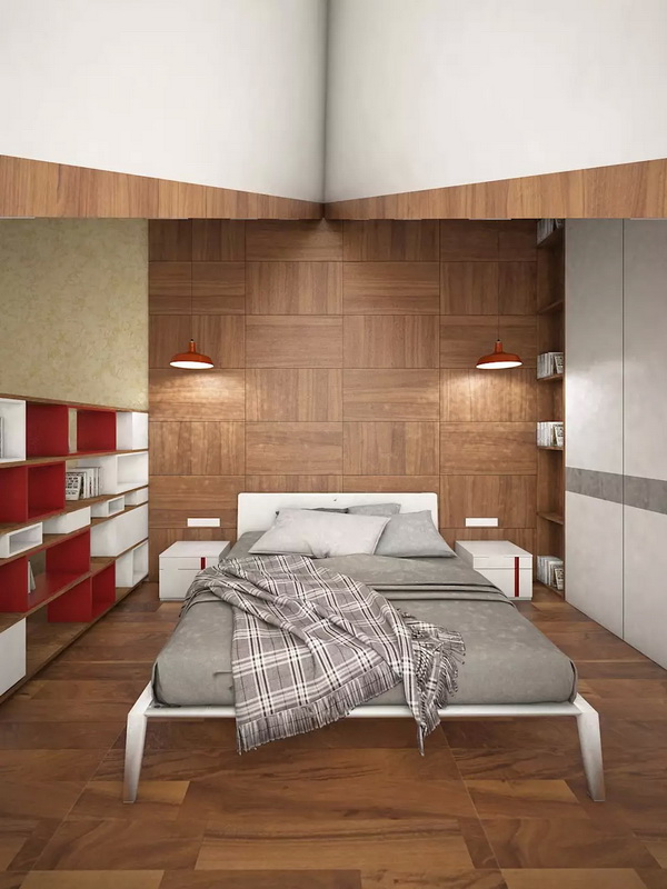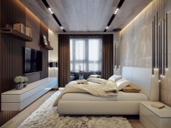 The design of the bedroom in a minimalist style depends on the individual preferences of the owner and the layout of the room. This direction involves the use of natural materialsbut high-quality imitation of stone and wood species will save money.