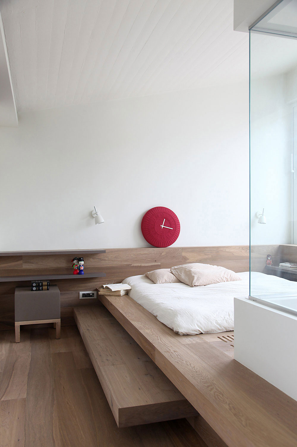 Furniture should not be large. It is better to refuse wardrobes and cabinets altogether, but if you do not have the opportunity to create a dressing room, then use modular wardrobes, ideally, if they are installed in the wall. “No frills” is the slogan of Minimalism. Carving, painting, print - all this is inappropriate in a minimalist design.