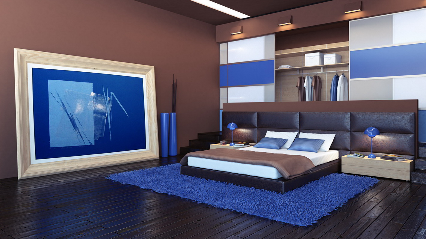 The color scheme of the floor is also kept in the same colors.Practical materials are used for the floor, for example, wood of the same breed or asphalt floor. In the bedroom it is better to pick up the carpet of the correct geometric shape, but it also should not contain patterns.