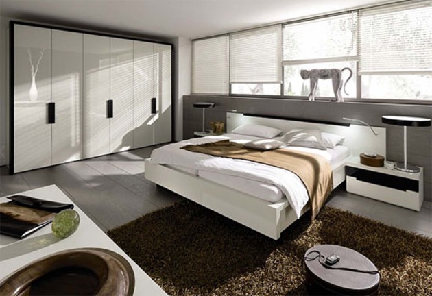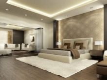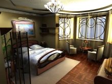 A bedroom with an original modern pattern can be ordered, it will be made according to your size. In some cases, the use of modern interior is furnished with leather furniture.