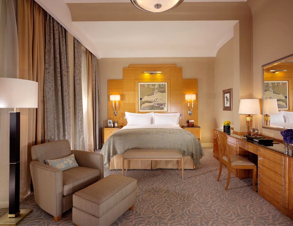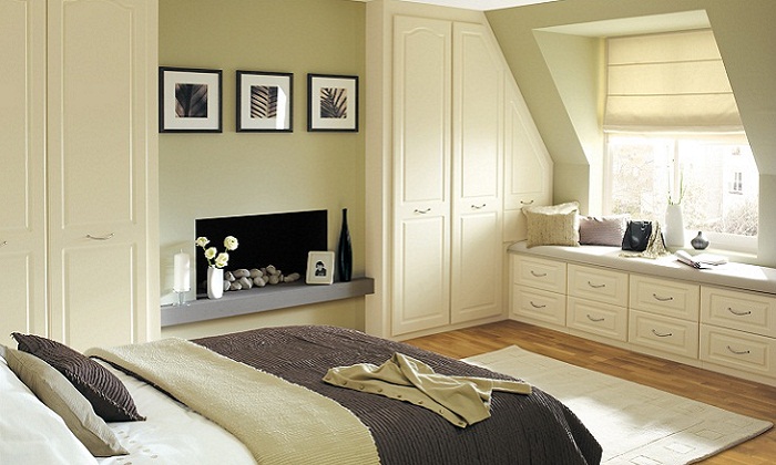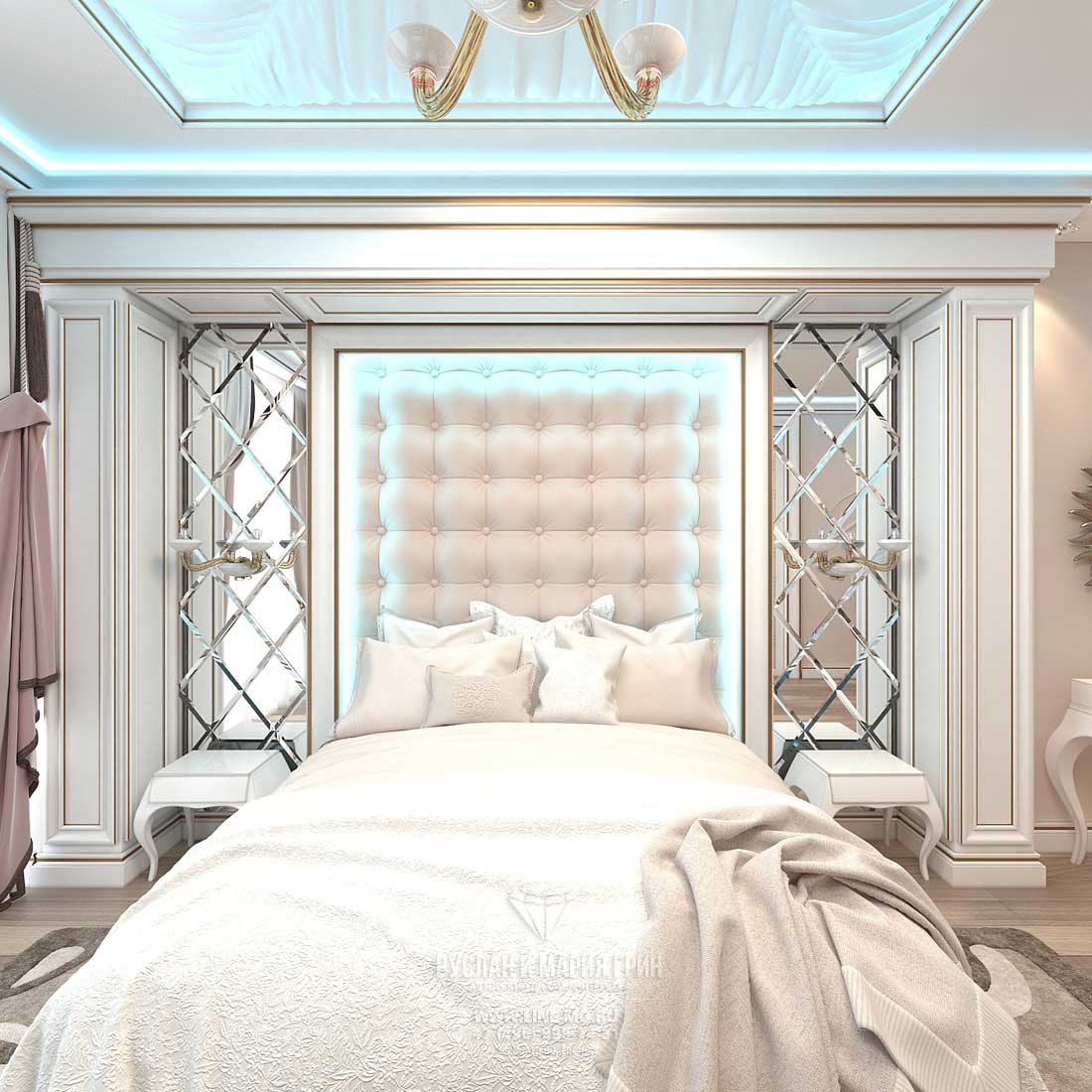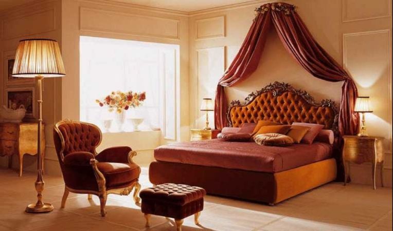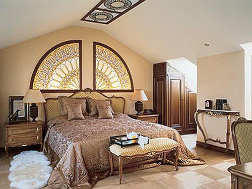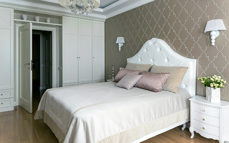 You can perform the design in the traditional way. Low-key tones of the walls will make the design decision simple and strict.Use furniture that is built into the size of your room. A large chandelier will be a bright accent and make the bedroom luxurious.