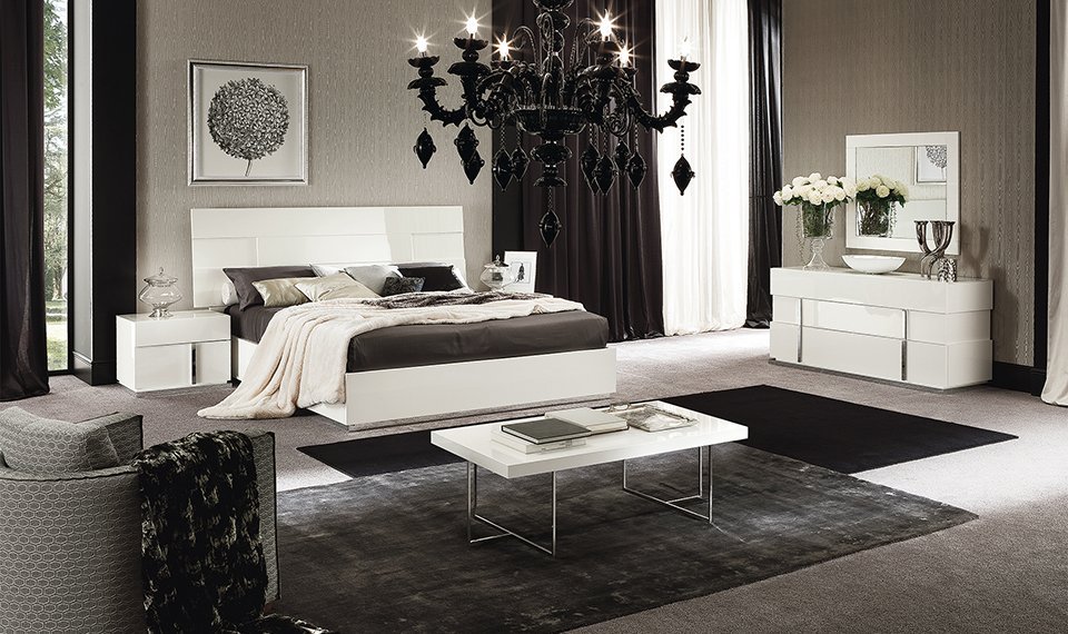 - White Italian bedrooms have always been the right choice for an apartment with a sufficient area. Bedroom sets from Italy look gorgeous and practical at the same time. Modern Italian bedroom in Art Nouveau style is made only from quality materials. The design uses the natural beauty of wooden surfaces: the subtlety of the pattern, elegant carving, natural texture. Masters from this country traditionally do not use forged products in their work.They prefer not massiveness, but the finest finishing of the product. This is how they differ from French furniture makers.
