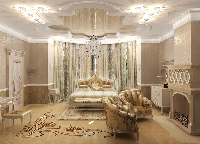 It is better to decorate furniture with floral ornaments that will perfectly fit into the concept of style. You can add a bedroom with a ceiling stucco with floral ornaments that will give the room an aristocratic look.