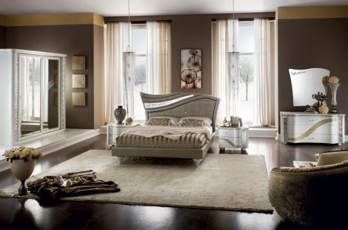 Curved lines look interesting in bedroom sets of furniture as a characteristic feature of this trend and design.