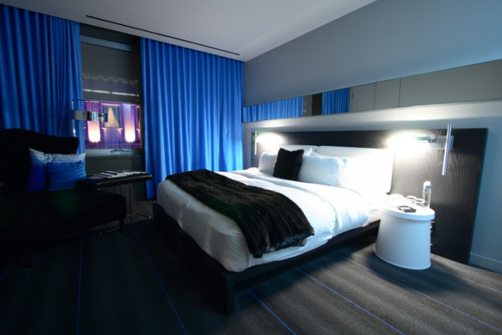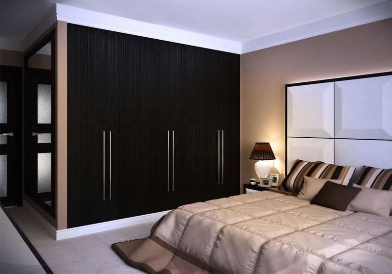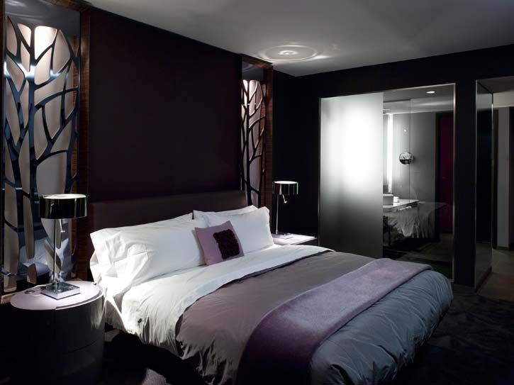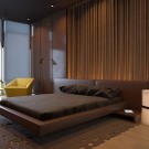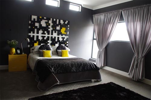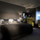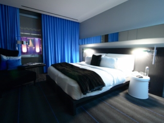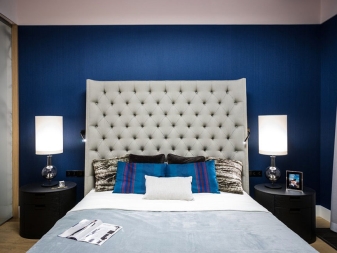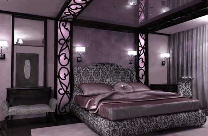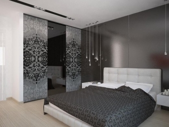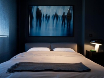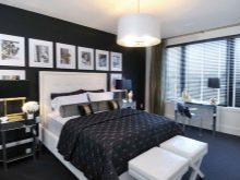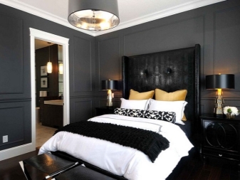 Quite common colors for decorating bedrooms are dark brown, dark gray, dark blue. These shades emphasize the design of a dark space.