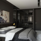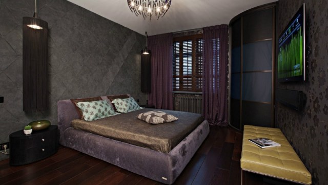 The bedroom interior in dark colors is possible in different styles: country, modern, art decor, classic.