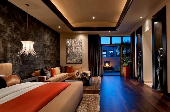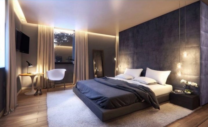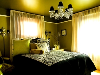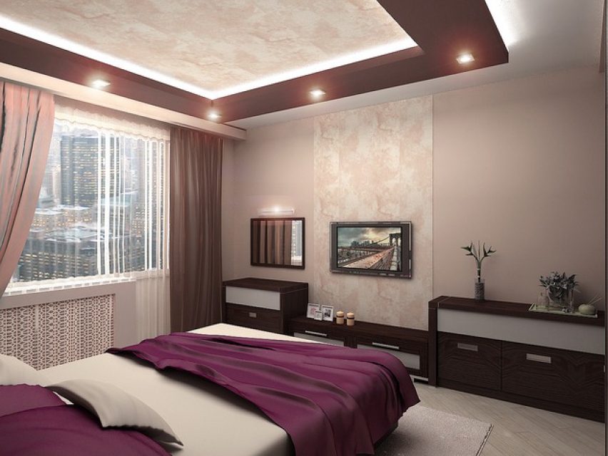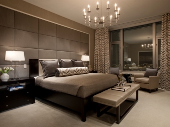 Regardless of the size of the bedroom, there should be a lot of lighting. Then you get a harmonious design: a room, though dark, but a sufficient amount of light smoothes out this impression. Providing suitable lighting is not very simple, to get the desired effect, it is very important to correctly distribute the lamps around the perimeter of the bedroom.