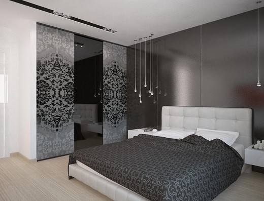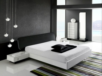 At the same time, black and white bedrooms with their laconic fit into the minimalist style. True, it is not necessary to take very sharp contrasts, you can use a smoother combination - take, for example, black and gray and pale beige.
