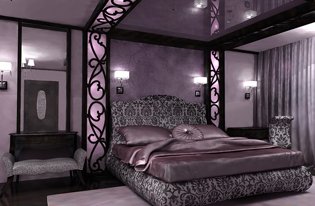 Usually such a bedroom contains different versions of light sources. The use of ceiling lamps, chandeliers, local light sources: floor lamps, wall lamps, table lamps, all kinds of lights is welcomed. Candles are an excellent solution; for security, you can take electronic ones or, for example, a lamp that has the shape of a candle.