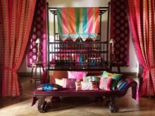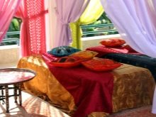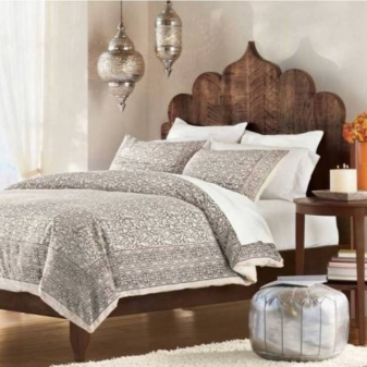 The room should have a lot of pillows of different shapes and sizes, which can be present not only on the bed, but also play the role of seating on the floor. Bedspreads and pillows are always decorated with elaborate embroidery, precious stones (in the modern version, of course, rhinestones replace them) and tassels.