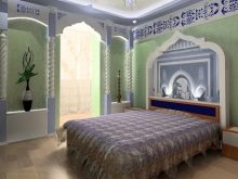 Arabian interior is widely used niche. Usually they have the form of lancet arches, which, in addition to the decorative purpose,plays a practical function. Previously, they hid their clothes, but now they are often the pedestal for the demonstration of accessories. The beds are also still installed in the niches, it looks very colorful.