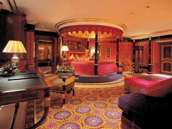 The interior in oriental style is associated with the luxurious palaces of Arab sheikhs, where there is a lot of gold, elephant tusks and expensive fabrics. The interior of these rooms is truly amazing.