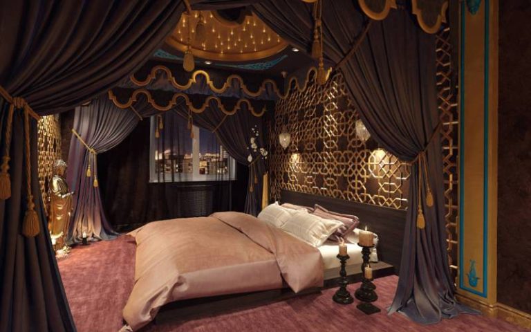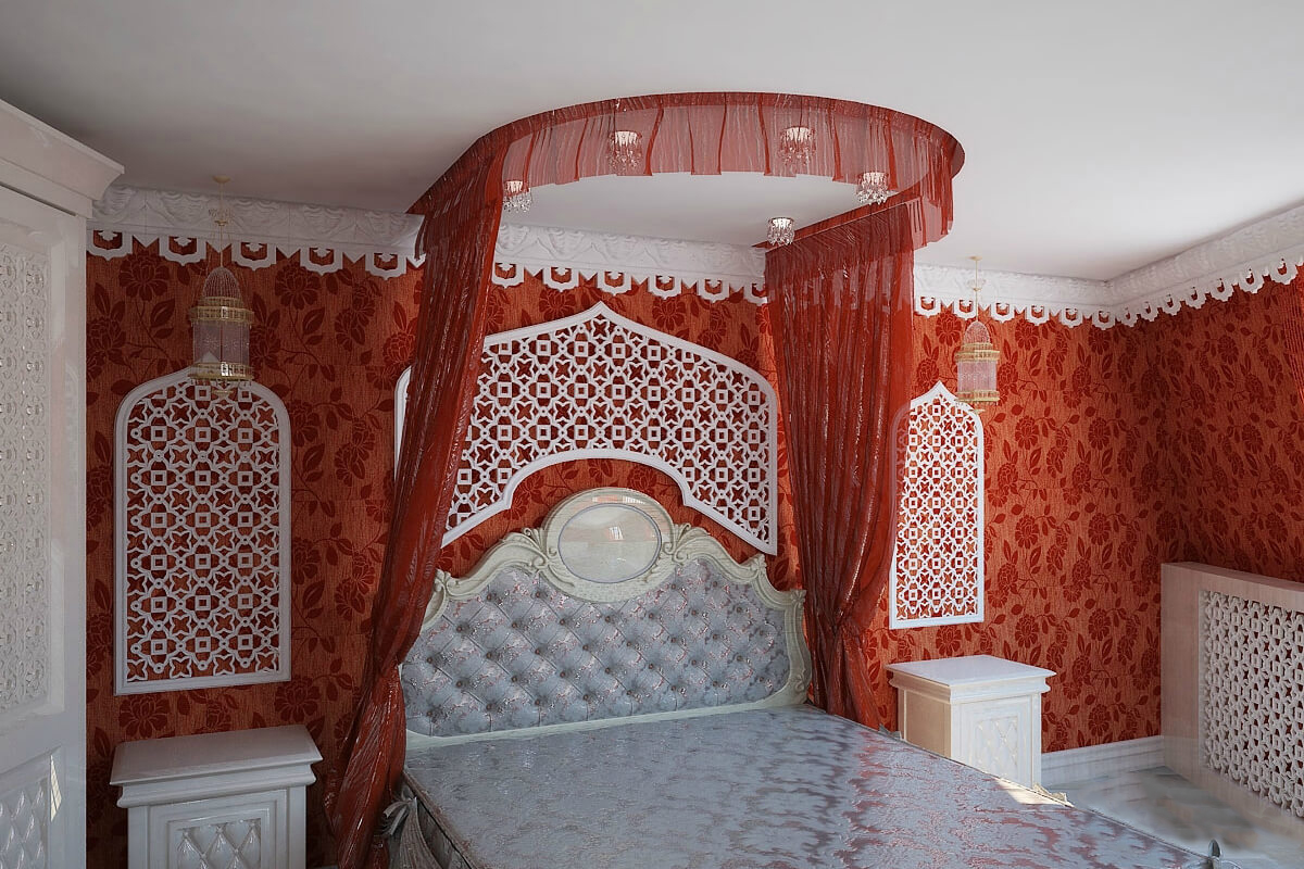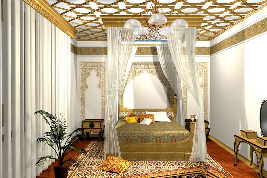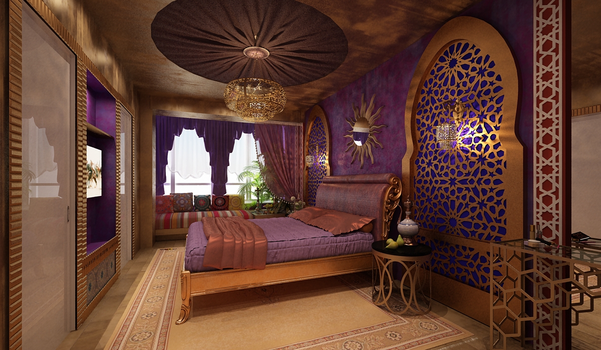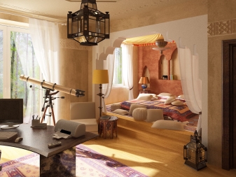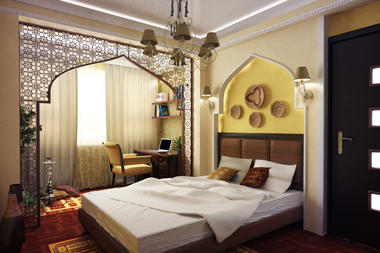 A bedroom in the Arabian style can transfer anyone to the oriental fairy tale "A Thousand and One Nights."Only a brave and original person would dare to decorate his bedroom, imitating Moroccan palaces buried in luxury.