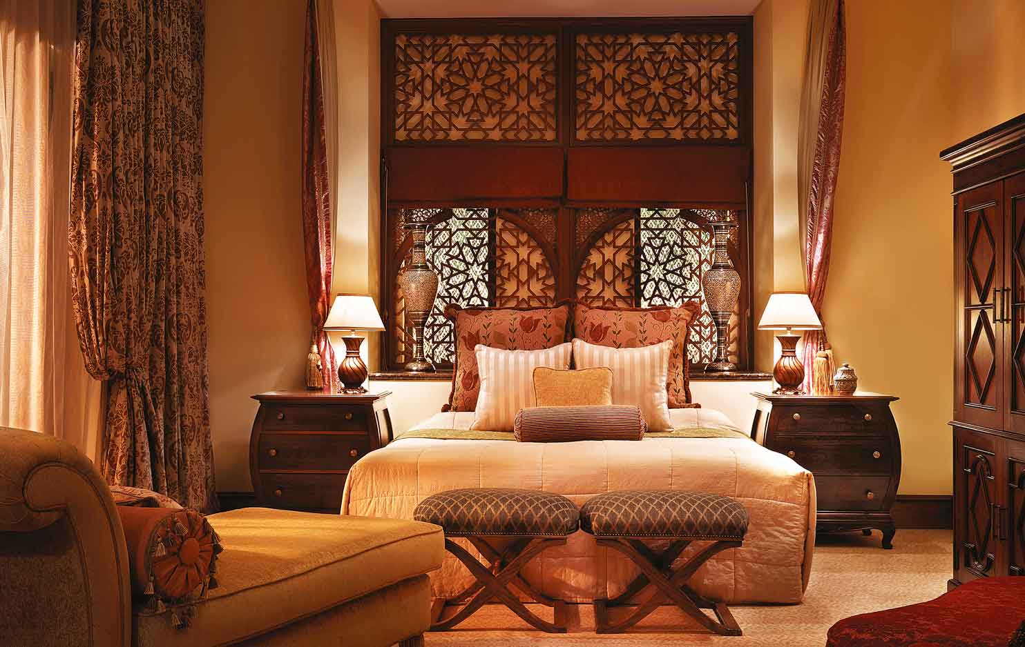 Furniture for a room in the Arabic style should be massive, made of precious woods of dark colors. The bed should be as low as possible. It is worth remembering that the Arabs were a nomadic people who used to sleep on the floor. And this fate did not bypass the sultans.