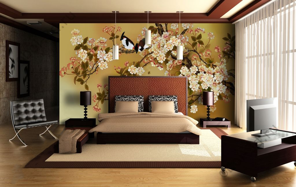 In the decor there are easily recognizable traditional Chinese motifs: bamboo stalks, birds, goldfish, dragons, flowers. Painting with hieroglyphs often decorates rooms in this style.
