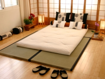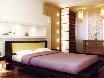 The main subject in any bedroom, whatever style it is, is the bed. If the bedroom is made in the Japanese style, then this piece of furniture should resemble as much as a futon - a rectangular mattress, which is preferred by the Japanese. The legs should either not be at all, or they should be low. There may be a special podium for the bed. It is not forbidden to use small bedside tables.