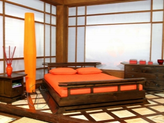 The doors in the Japanese bedroom are made sliding, which significantly increases the living space of the room.