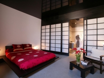 An indispensable attribute in the Japanese bedroom is a screen-screen. It can be depicted animals and plants, made in the national Japanese style.