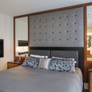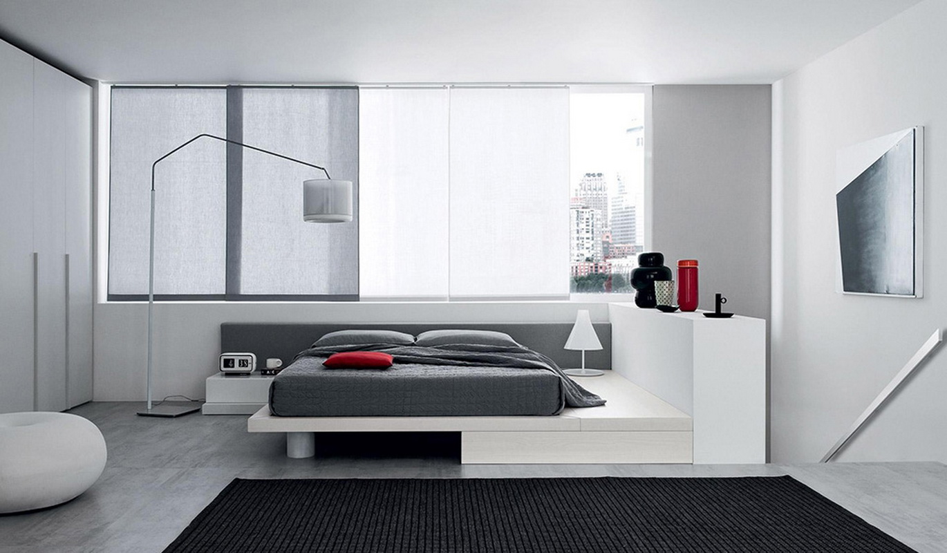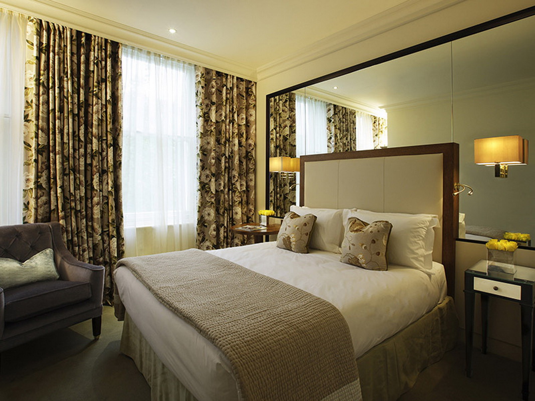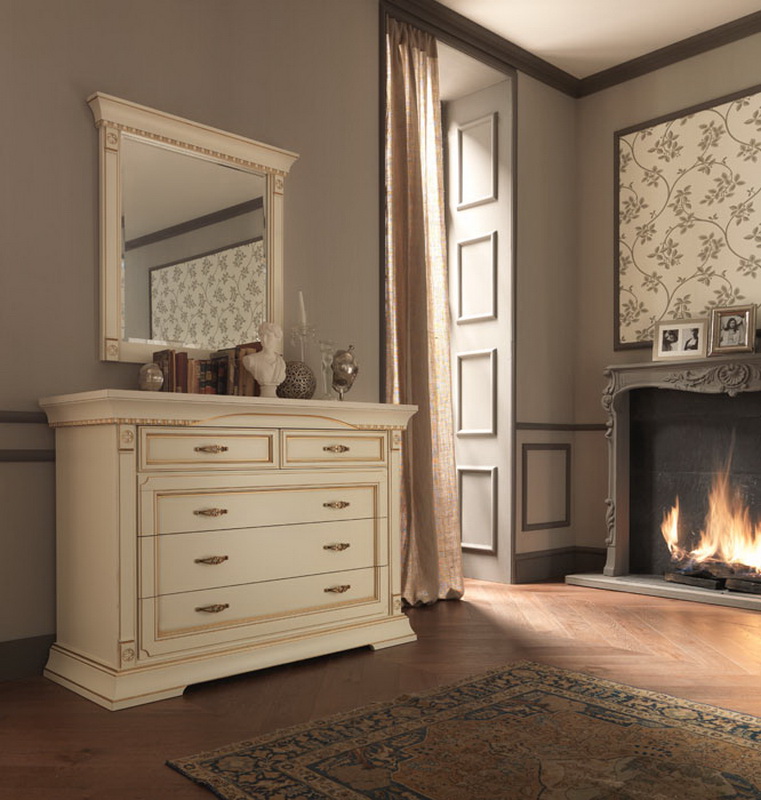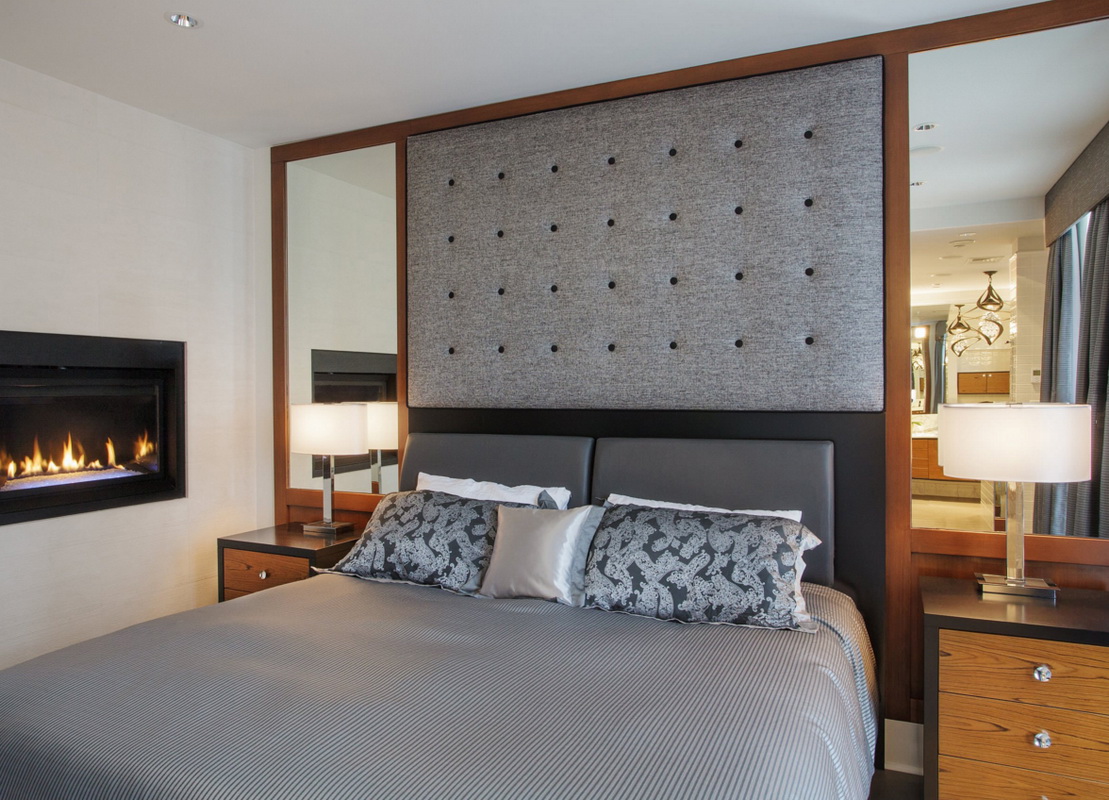 If your bedroom is too small for massive furniture, then stop your choice on a small bedside table. Twin bedside tables with mirrors will decorate the bedroom interior.