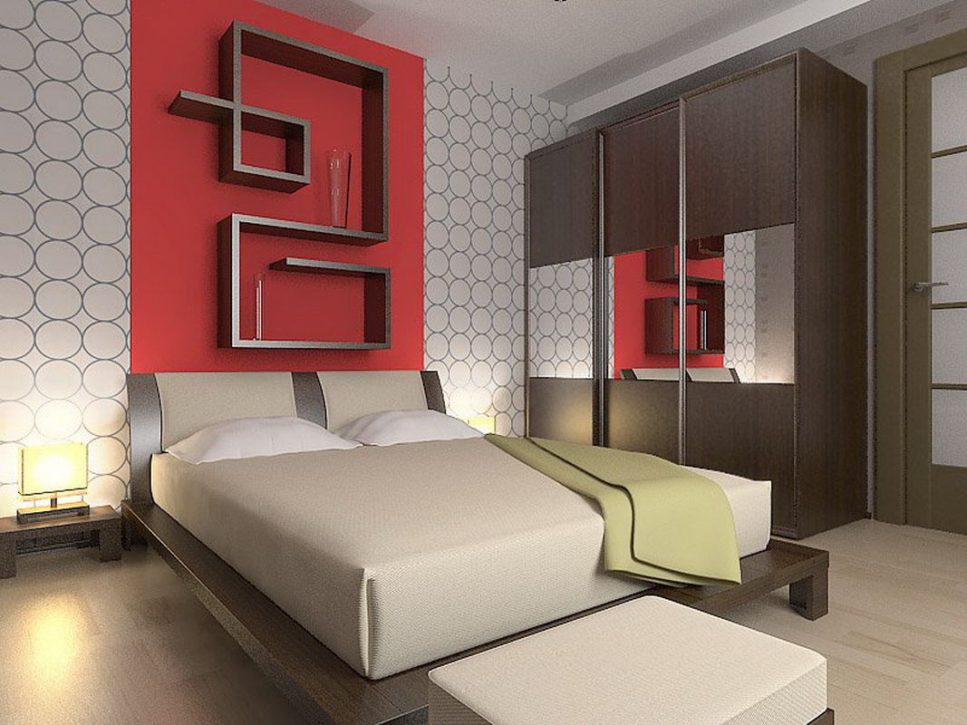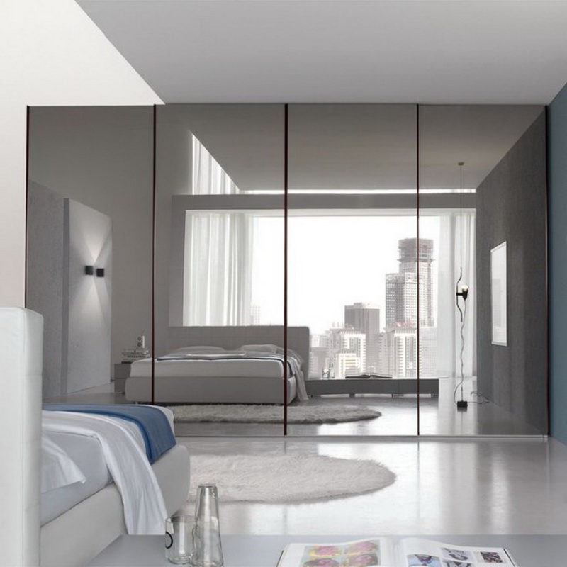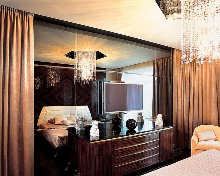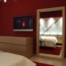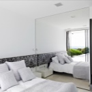 - Miracle in a small room. Mirrors are able to double everything, even space. The reflective surface in the whole wall in an interesting frame will visually increase your sleeping area. To expand the space, you can use large elements with facet.