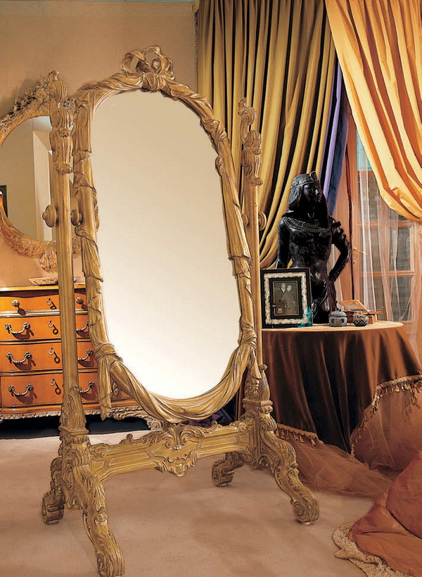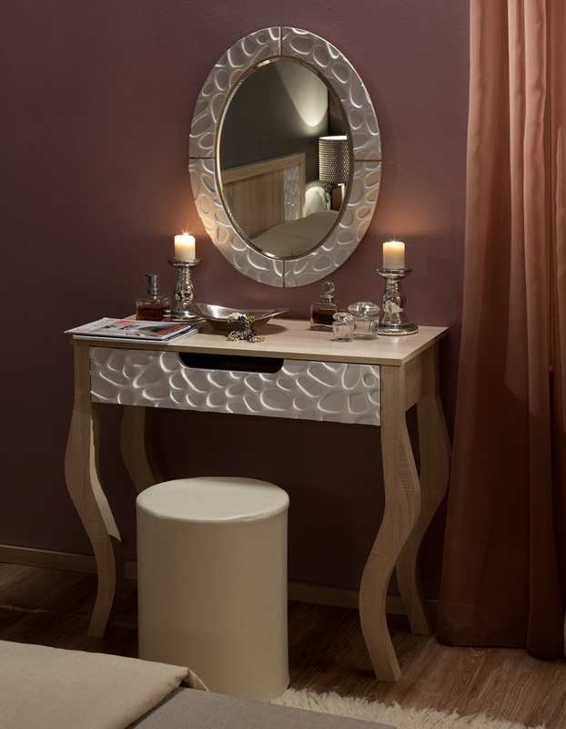 Making a mirror for the bedroom of a young girl is different from the rest. You can add romanticism and tenderness to the decor with the help of additional decorative details. The frame can be covered with textiles or embroidered with threads.Also for decoration can be useful sequins, glass beads and beads. The frame itself can be pale pink, white or beige. In the bedroom of the spouses you can put mirrors with design in ivory. Thus you create a special comfort. Light mirror frames perfectly expand the space. This color is combined with many interiors and is almost universal.