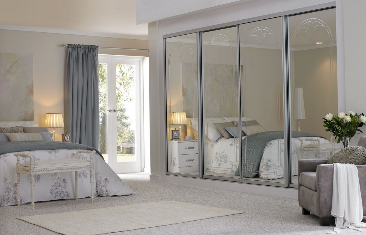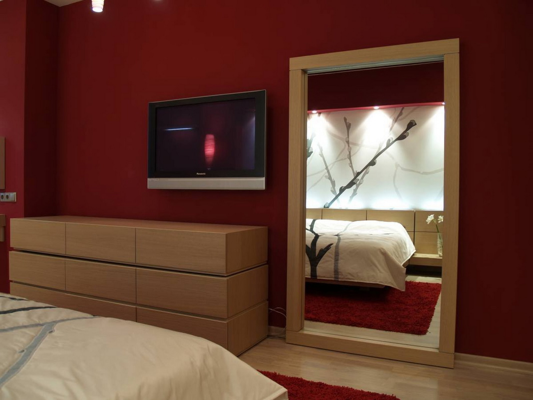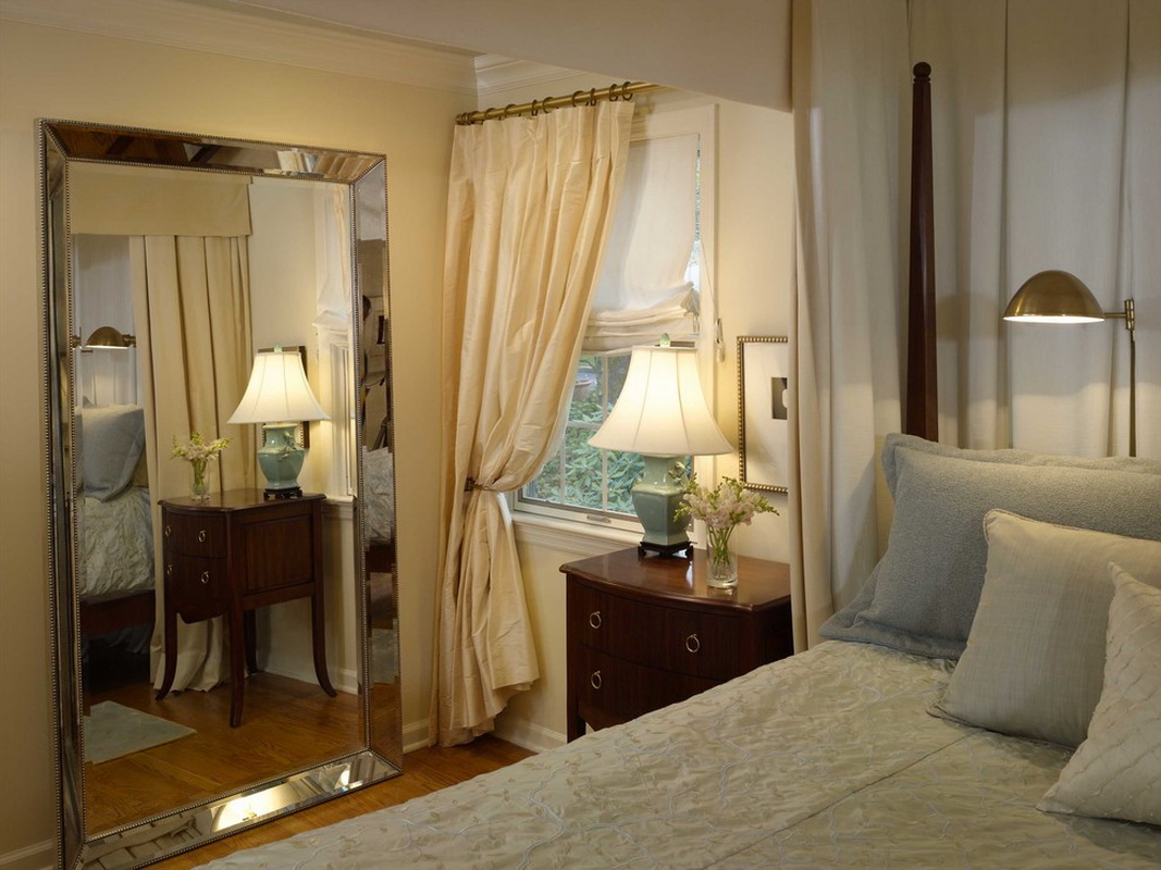 - Additional window. Mirrors opposite the window opening create the illusion of a second window. Doubles and natural lighting in the bedroom. Many prefer this design option.