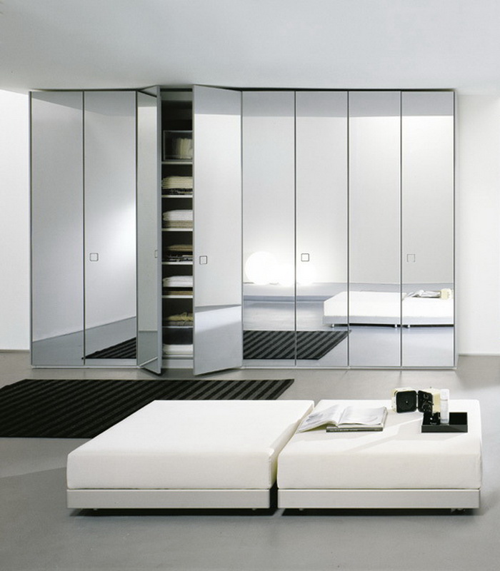 A very convenient and popular option is the cabinet with a mirrored door or with a reflective surface on the inside. The latter option will not affect the interior, but will provide an opportunity to use a mirror as needed. The wardrobe in the second version can be placed in any part of the bedroom.You can purchase a mirror with a hanger. This design is functional and perfectly decorates the interior of the bedroom. An alternative is a cabinet with a shelf or cabinets. It is convenient to use such furniture.