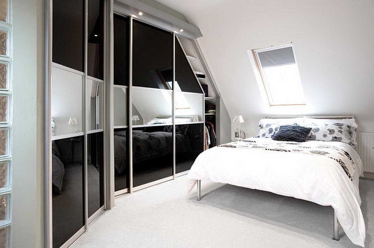 - Window adjustment. Place the mirrors at right angles to the window. Reflection will visually expand the window area. Moreover, this solution will significantly improve the natural lighting of the bedroom. With the same purpose, you can arrange reflective slopes.