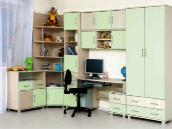 This furniture should be very functional. This quality is manifested in the fact that such a thing should not take up too much space in the room, but at the same time be very roomy and comfortable. That is why the walls, which include a whole set of furniture, are perfect for young schoolchildren and teenagers. These are usually products with a wardrobe, a table, or even two tables, as well as shelves for textbooks and books. Some children's walls include computer workstations and a large number of drawers for exercise books and other necessary items.